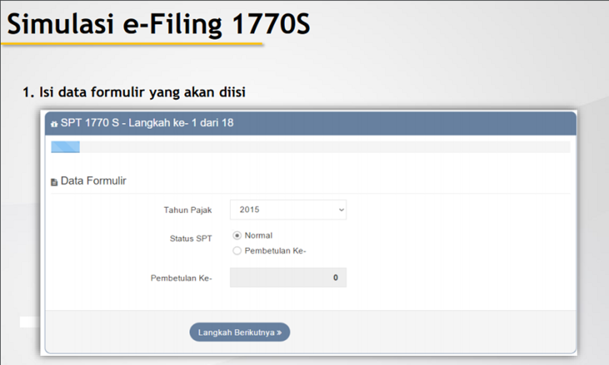 Kode pembetulan sudah digunakan untuk jenis formulir spt yg lain itu kenapa yaaklo pilih normal seperti itu klo aku pilih pembetulan udh bisa di isi udh masukin kirim kode verifikasi pas mau kirim spt ada info spt tahun sebelumnya tidak ada padahal kan tahun 2015 udh ada penyampaian bukti eletroniknya. Formulir spt jenis 1770 s merupakan jenis spt tahunan khusus untuk pribadi yang memiliki penghasilan tahunan lebih dari rp60 juta. Sebelumnya saya sudah mengerjakan form 1770ss tetapi blum terkirim mohon bantuannya.