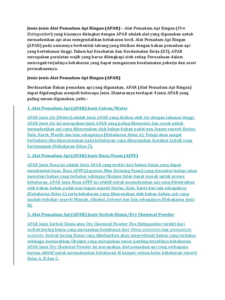 Jenis Jenis Alat Pemadam Api Jenis Dan Kelas Alat Pemadam Api